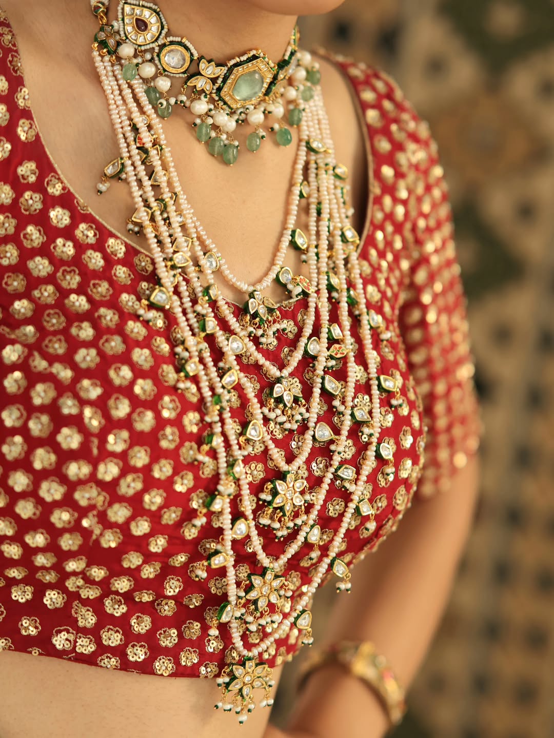Add to cart Multicolor Gold-Plated Jadau Kundan Necklace Set with Tikka & Passa