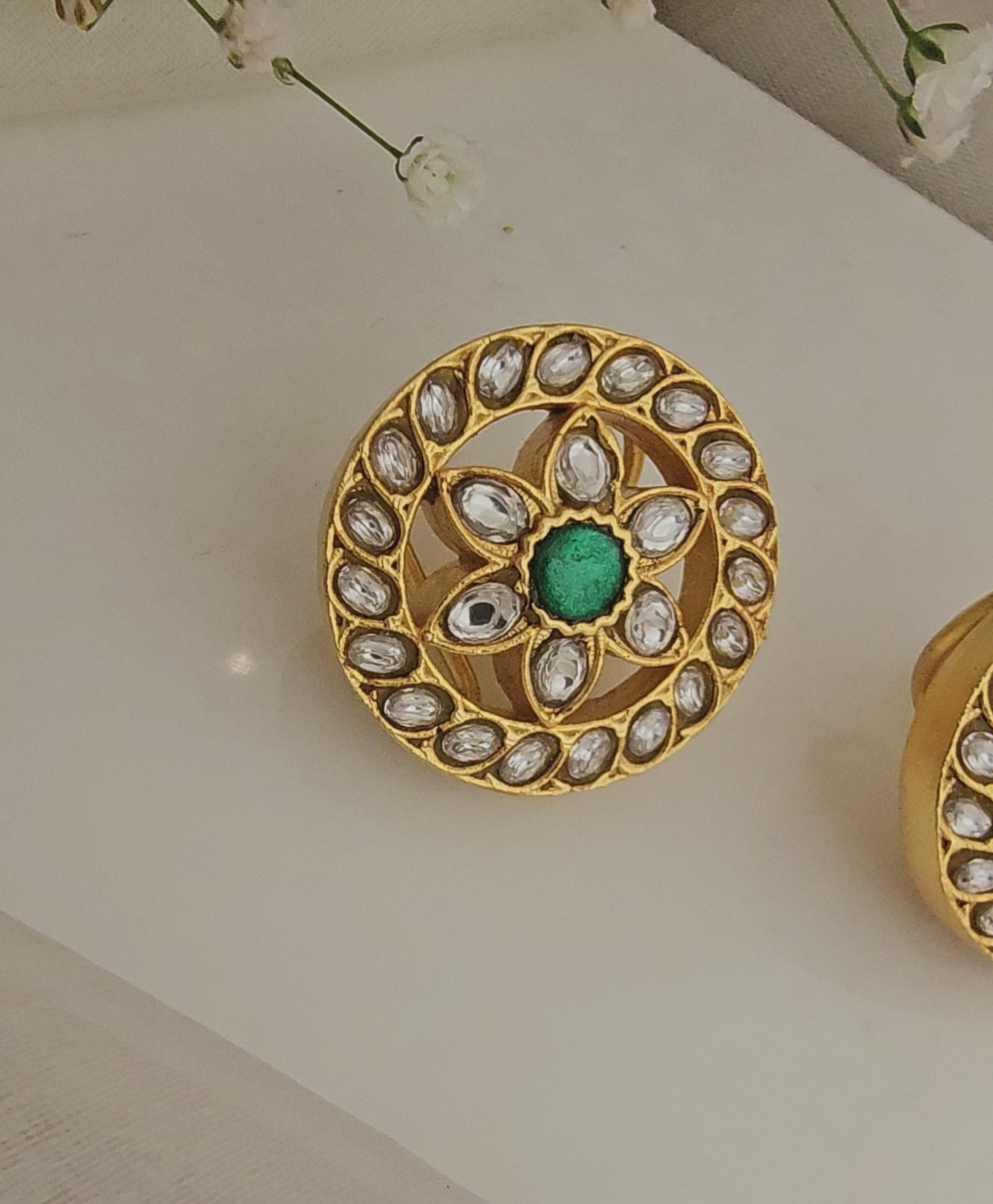 Gold plated round jadau kundan polki studs.